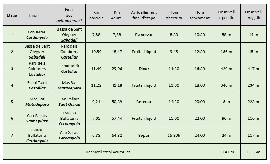 Les localitzacions dels avituallaments i les distàncies del recorregut poden canviar per causes alienes a l’organització.